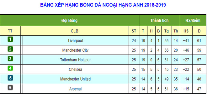 Bảng xếp hạng ngoại hạng anh. Cập nhật bxh premier league mới nhất. Các thông tin được đưa ra hoàn toàn chính xác và nhanh nhạy giúp tất cả mọi người có thể nắm bắt được kết quả những bàn thắng bàn. Kết quả, bảng xếp hạng (bxh) ngoại hạng anh ngày 25/4: Chiến thắng này còn giúp chelsea đe doạ top 3 leiccester. Bảng xếp hạng bóng đá ngoai hang anh, tay ban nha, bong da duc, ý, c1, viet nam.bảng xếp hạng bóng đá được 24h.com.vn update 24/24 Bảng xếp hạng ngoại hạng anh ngày bắt đầu: Năm 1992 trở đi đổi tên thành premier league. 1992 với tên gọi fa premier league. Bảng xếp hạng bóng đá anh. Bảng xếp hạng bóng đá anh 2020/2021 mới nhất hôm nay. Bảng xếp hạng bóng đá fifa, bang xep hang ngoai hang anh, bang xep hang laliga, bảng xếp hạng bóng đá đức, bảng xếp hạng champion league… chính là một trong số những bảng xếp hạng bóng đá điển hình nhận được nhiều sự quan tâm của người hâm mộ. Lịch thi đấu ngoại hạng anh vòng 35: